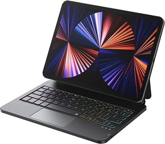 מקלדת מגנטית אלחוטית עם תאורת RGB לאייפד Air 13 M2, מציעה חוויית הקלדה נוחה עם תאורה אחורית מותאמת אישית, חיבור יציב ב-Bluetooth 5.3, וסוללה עמידה במיוחד. בנוסף, היא כוללת הגנה מקיפה מפני פגיעות ושומרת על עיצוב מינימליסטי.